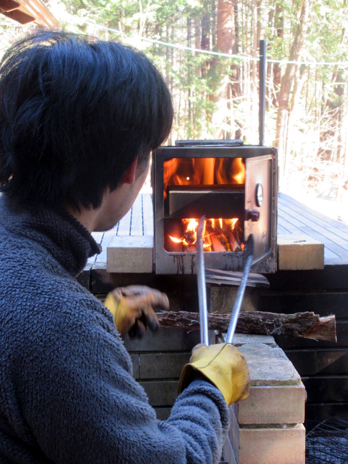 耐火レンガを置き、下から巻き火で焼くスタイルを発明。