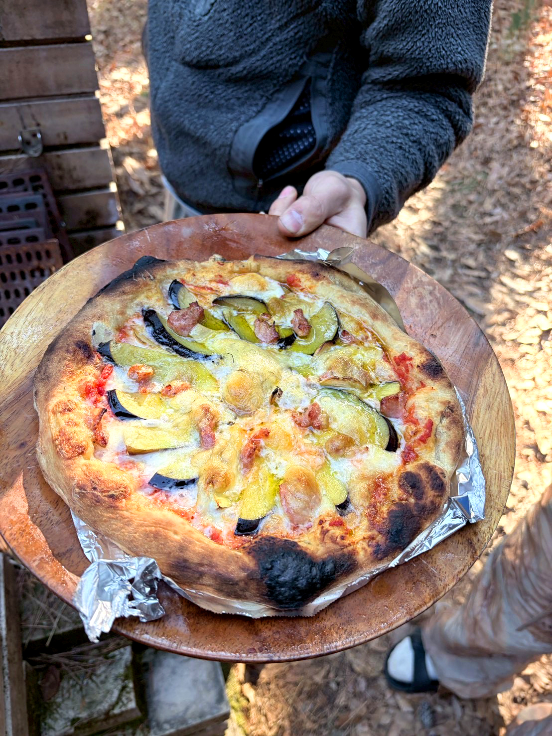 今回初挑戦したのは釜焼きピザ!