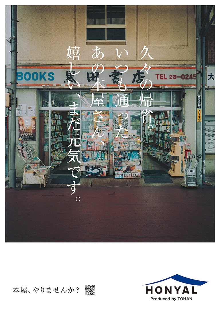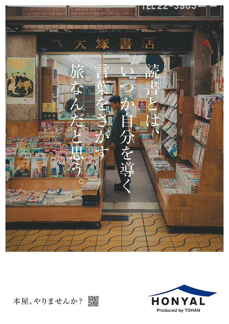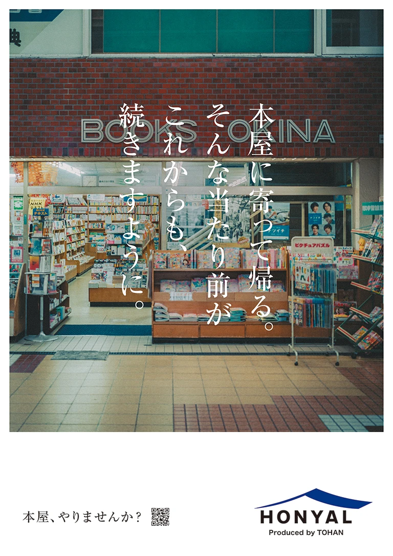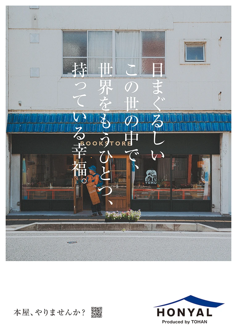 トーハン HONYAL TOHAN "HONYAL" 幸せなお仕事でした。 Play HONYALな人、増えてます。 blank Play HONYALな人「カレー屋で、本屋」 blank Play HONYALな人「編集者の本屋」 blank Play HONYALな人「実家を改装して、本屋」 blank Play HONYALな人「花屋と、本屋」 blank Play HONYALな人「妖精に会える本屋」 blank Credit Movie Producer 小松 圭介 Production Manager 服部 亜海 Director SPOON Cinematographer 神谷 諒 Edit 水野 快 GR Producer 小松 圭介 Production Manager 服部 亜海 Production Manager 千々岩 秀也 Photographer 神谷 諒 Information Date 2026.02 Category WebGraphic